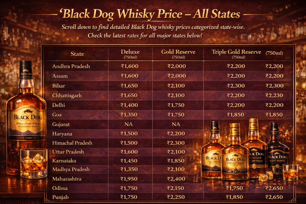 Black Dog Whisky Price – All States Price Tables (2026)